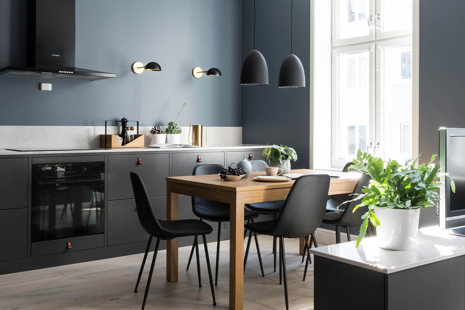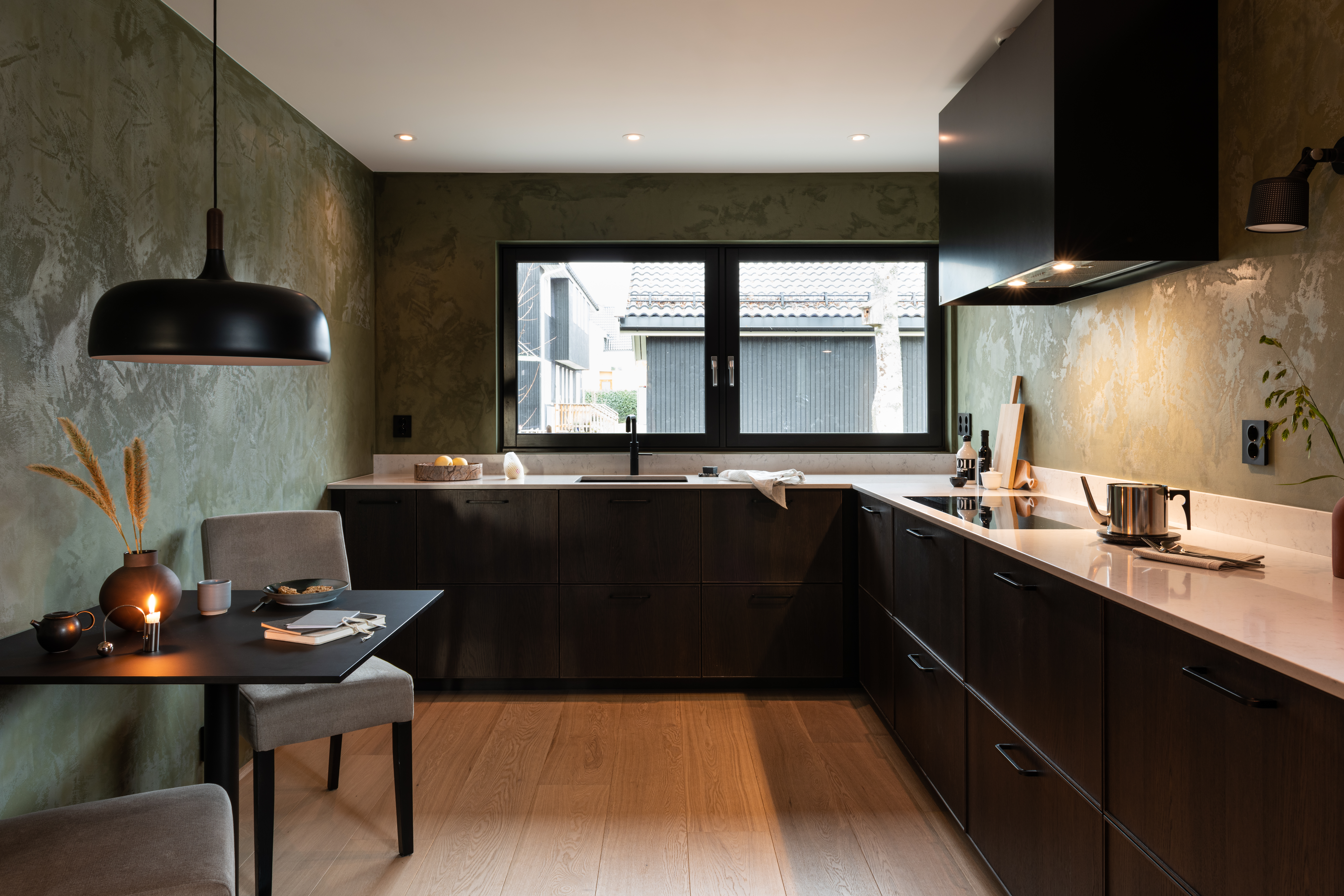 – En ting er å prøve seg frem med ulike fargepaletter, men hvorfor ikke velge tapet, finér, metall eller akustiske elementer på veggene? Tenk utradisjonelt også når det gjelder belysning, for eksempel ledstriper under kjøkkenskap og innlagt lys i gardinene og bak hodegjerdet.