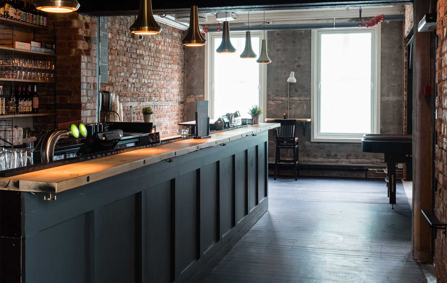 Det er ikke bare den lune stemningen gjestene kan kjenne seg igjen i når de stiger inn i de splitter nye lokalene – titter man for eksempel opp i taket finner man pallene som tidligere utgjorde veggene på den gamle adressen. Mange av materialene fra den gamle adressen er gjenbrukt på kreative måter i huset.